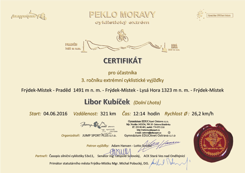 Certifikát 2016/3. ročník